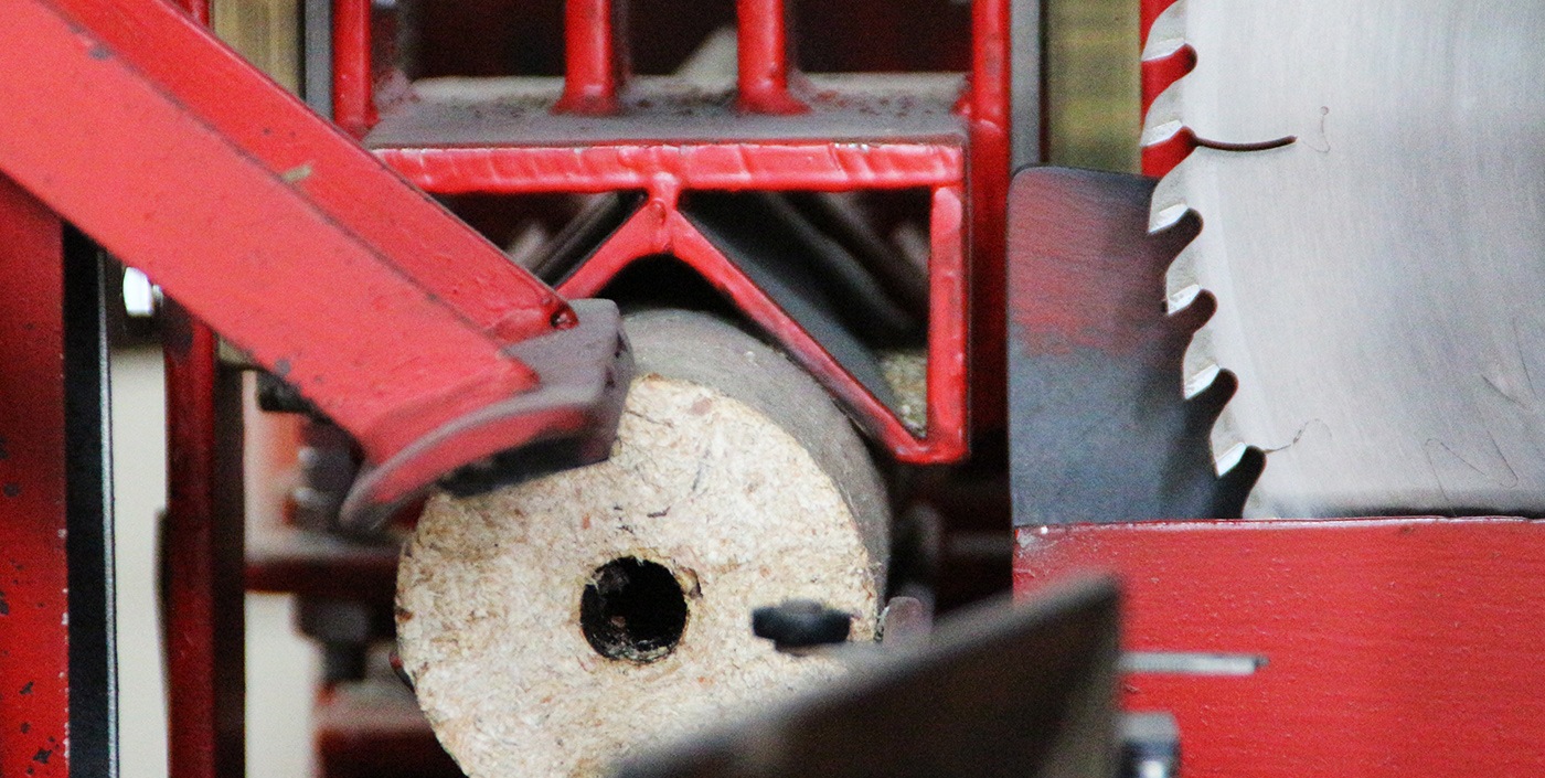 L’energia ricavata dalla centrale di cogenerazione viene utilizzata per lavorare ulteriormente i pellet: Il materiale viene compattato ad alta pressione e successivamente fatto passare attraverso i fori di una matrice.