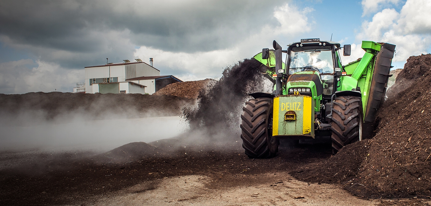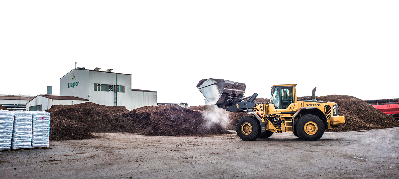 Als Grundlage für nachhaltige, bioökonomische Produkte verarbeiten wir unter anderem Garten- und Grünabfälle zu Komposten, die dann wiederum als Ausgangsstoff für verschiedenste Substratmischungen dienen. Mulche entstehen durch die Veredelung und Aufwertung von Rinden"abfällen", Sägespäne werden zu Pellets oder Briketts verpresst. Holzschnitzel und andere Restprodukte aus heimischen Wäldern und Forstwirtschaft verfeuern wir an unseren Standorten und geben der Natur die darin enthaltenen Nährstoffe in Form RAL-gesicherter Asche zurück.